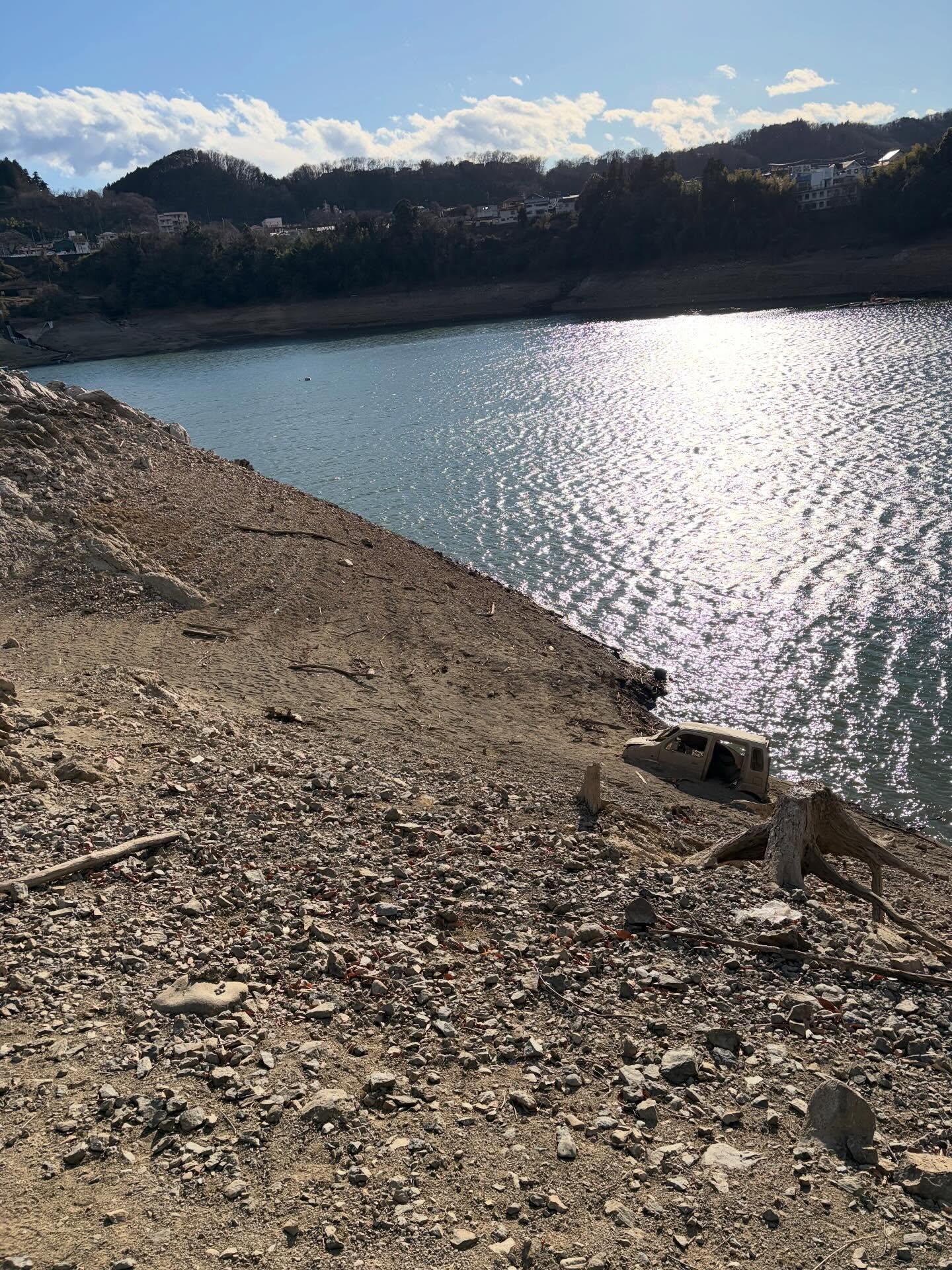 時間が空いた午後、昼ごはんがてら少し散歩して水が少ない津久井湖へ行ってきました